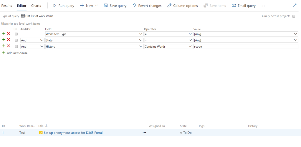 - History: Each work item has a discussion area to allow comments related to the work item. The discussion area contains timestamped records of each comment made by each user. The comments are saved in the history field and can be used in queries in Azure DevOps.