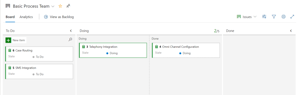As each work item progresses, they go through different states. The states available by default differ based on the process selected. The basic process has only three states – To Do, Doing and Done.