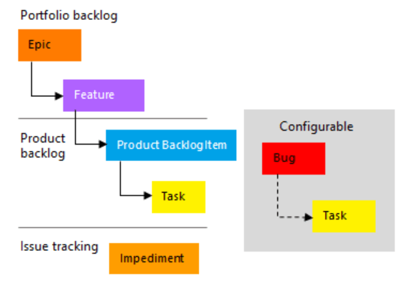 Epic: These are meant to contain details of the high level process being delivered. An example of a typical epic could be “Warranty Management”. The development team would be aware that warranty management may be needed but will require detailed requirements (created as product backlog items) in order to estimate and ultimately deliver the epic.