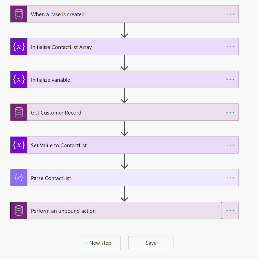 The flow steps shown above uses a Common Data Service connector to trigger a flow on the creation of a new case